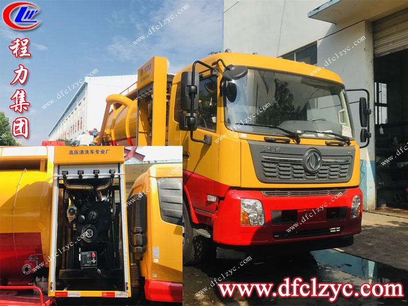 上圖為東風天龍國六清洗吸污車整車設計圖